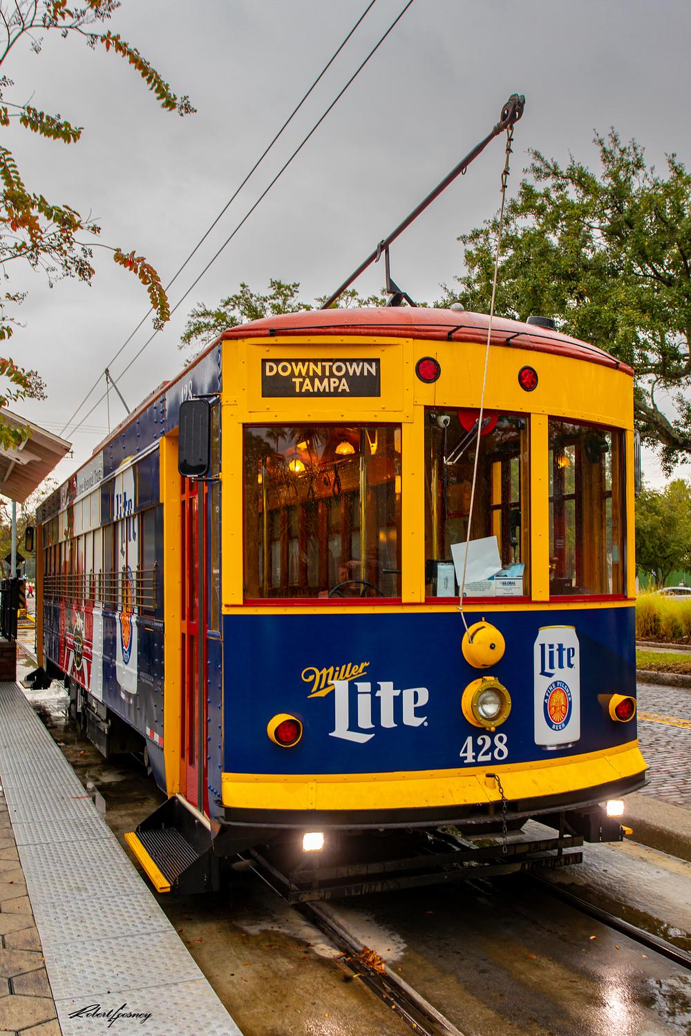Sign says destination is Downtown Tampa - Street car in Ybor City, Tampa Florida