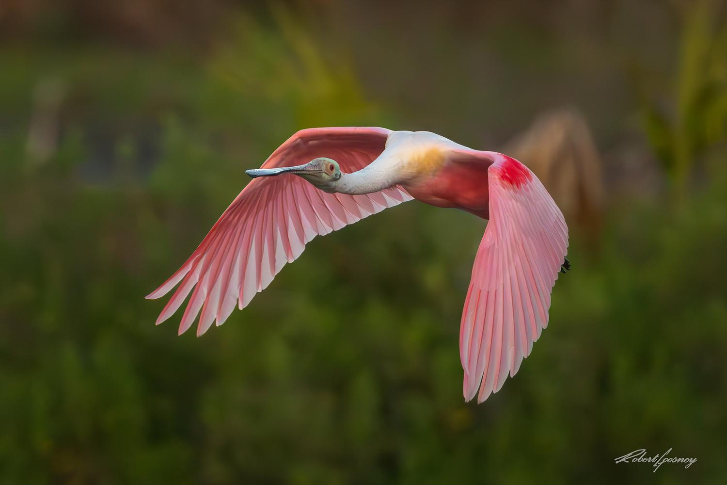 A roseate Spoonbill in flight near Gibsonton Florida